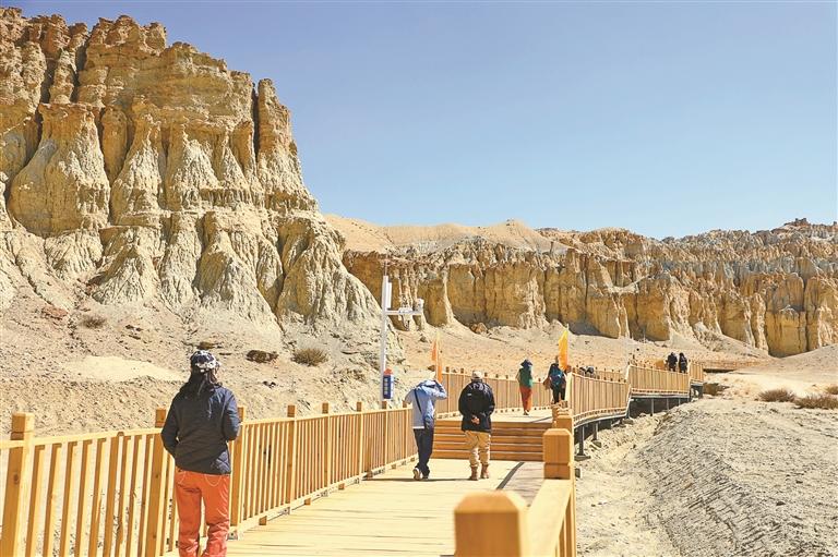游客们在香孜五彩土林景区内游览。本报记者 永青 摄 徒步爱好者参加“天上阿里·极境征途”环保徒步活动。阿里地区文旅局供图 清晨9时许,海拔约4300米的阿里地区噶尔县狮泉河镇,天际才刚泛起一抹鱼肚白。25岁的藏族...