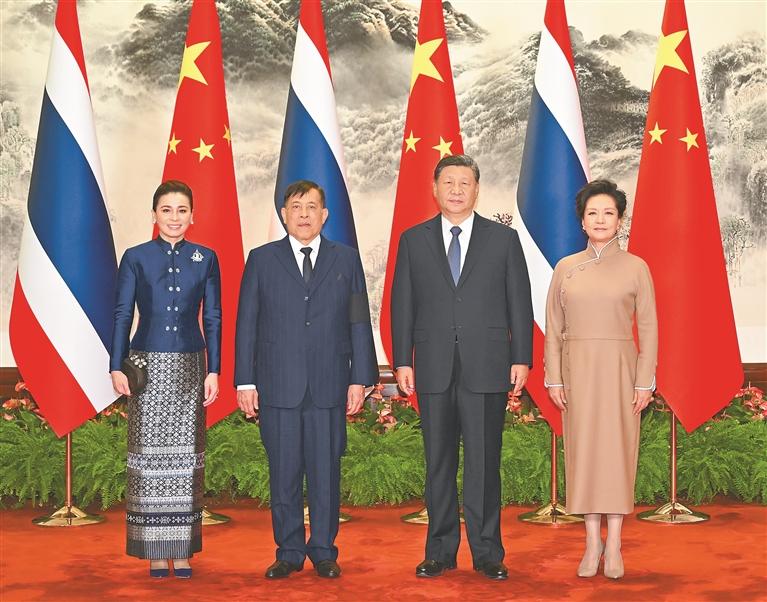 11月14日上午,国家主席习近平在北京人民大会堂会见来华进行国事访问的泰国国王哇集拉隆功。这是习近平和夫人彭丽媛同哇集拉隆功和王后素提达合影。新华社记者 谢环驰 摄 新华社北京11月14日电 11月14日上午,国家主席习...