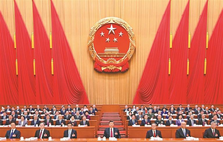 3月5日,第十四届全国人民代表大会第四次会议在北京人民大会堂开幕。党和国家领导人习近平、李强、王沪宁、蔡奇、丁薛祥、李希、韩正等出席大会。新华社记者 谢环驰 摄 3月5日上午,第十四届全国人民代表大会第四次会议在...