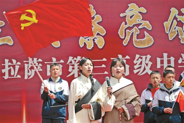 近日,拉萨市第三高级中学举办第二届“红歌嘹亮颂党恩 众心向党启新程”主题活动,通过主题演讲、民族舞蹈、互动知识竞赛等环节深入传承红色基因,厚植青年学生爱党爱国爱社会主义情怀,展现昂扬向上的精神风貌。
