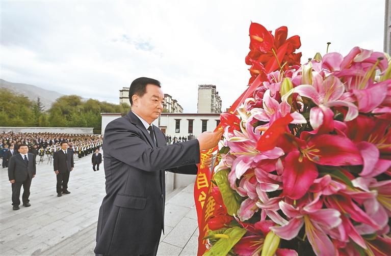 本报拉萨9月30日讯 英名垂青史,鲜花祭忠魂。9月30日上午,自治区举行烈士纪念日向烈士敬献花篮仪式。自治区党政军领导同全区各族各界干部群众代表一起在拉萨烈士陵园向烈士敬献花篮,深切缅怀革命先烈,传承红色基因,赓续红色血脉,凝聚建设社会主义现代化新西藏的强大力量。