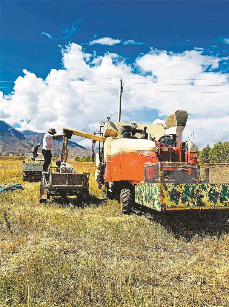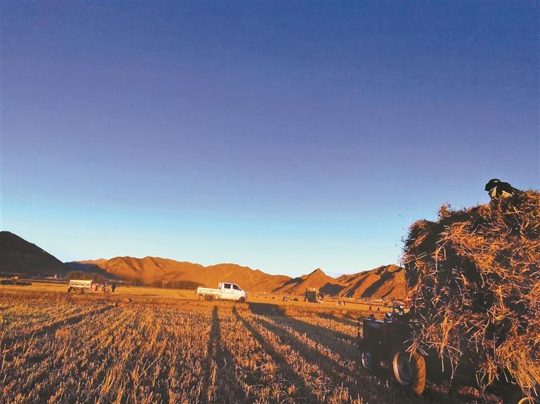 图为卡孜乡秋收。