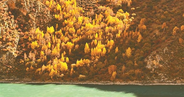山林间的秋意也藏着灵动与敬畏。边交林镇当杰村藏嘎组的神秘树林里,24公里外的县城喧嚣被隔绝,秋风穿叶的轻响与落叶“咔嚓”的脆响交织成曲,游人踏着鎏金光影慢行,或举相机定格景致,或席地享受宁静;不远处的热振国家森林公园里,22万株以大果圆柏为主的千年古树(最高达国家一级保护级别),翠绿枝叶间缀满金黄与橙红,与远处雪峰构成层次分明的色块。文玩圈追捧的热振籽原果,正是这些古树自然脱落的馈赠,树旁“禁止采摘,违者必究”的标识格外醒目。同行的护林员顿珠次仁提醒:“这些古柏是高原‘活化石’,2018年起就明令保护,随便采摘不仅破坏生态,还违反《中华人民共和国野生植物保护条例》,之前有人受了处罚。”对自然的敬畏,让踏秋多了庄重的仪式感。