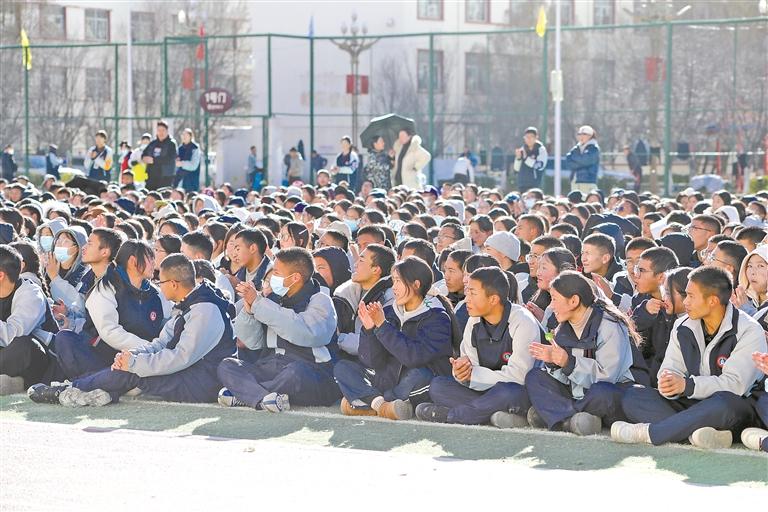 图为学生们在现场认真聆听并热烈鼓掌。本报记者 贡秋曲措 摄