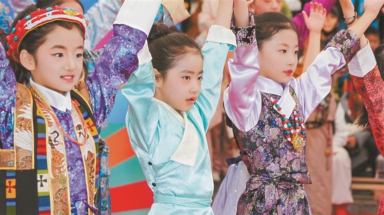 图为活动现场,小朋友正在表演节目。本报记者 袁海霞 摄