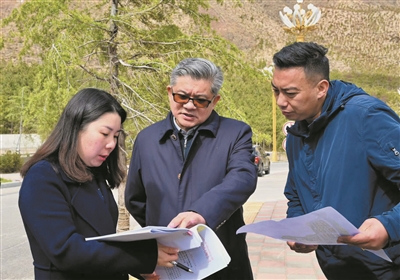 图为王强在顿珠金融城详细了解相关地块、建筑的规划建设运营情况。拉萨融媒记者 久美顿珠 摄