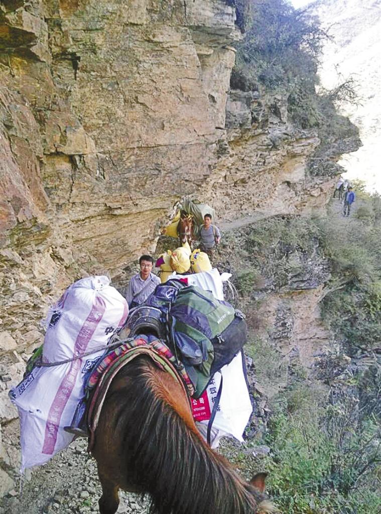 图为2014年3月,勘测人员在金沙江藏川段骑马勘测。何军 摄