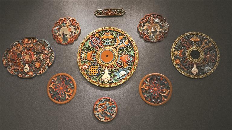 传统藏式木雕彩绘作品。
