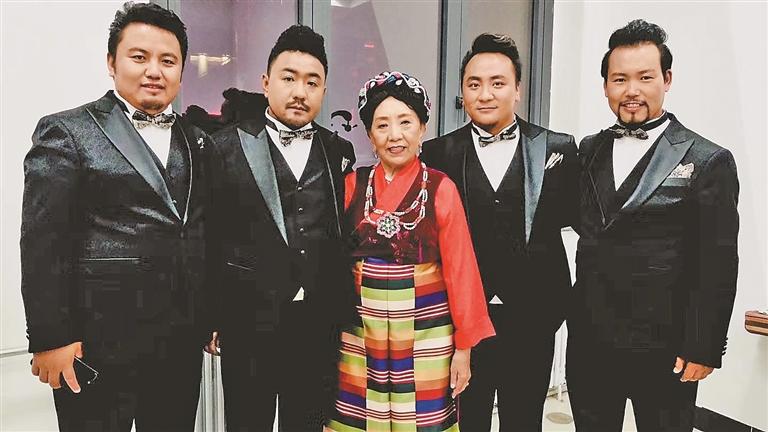 图为“雪域之子”组合与著名女高音歌唱家才旦卓玛(中)合影。(图片均由占堆提供)