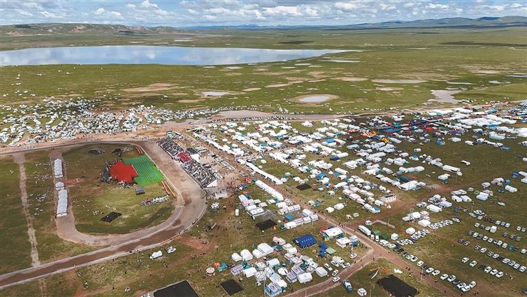图为聂荣县赛马节(无人机照片)。本报记者 赵书彬 摄