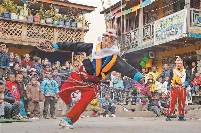 1月18日,在日喀则市定结县陈塘藏戏广场上,一场别开生面的夏尔巴玛尼戏精彩上演。演出中,演员们身着色彩鲜艳的传统服饰,佩戴独具特色的面具,在激昂的鼓点与悠扬独特的唱腔中,倾情演绎古老的传说与故事,为新春佳节增添了浓厚而庄重的文化氛围。