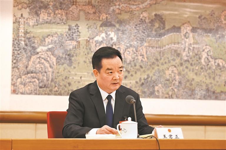 王君正说,李强总理作的政府工作报告全面贯彻习近平新时代中国特色社会主义思想,回顾总结2025年政府主要工作和“十四五”时期取得的重大成就,阐述说明“十五五”时期主要目标和重大任务,提出2026年经济社会发展总体要求、政策取向和重点任务,总结成绩实事求是,分析问题科学精准,部署工作重点突出,是一个高举旗帜、维护核心、增强信心、凝聚人心的好报告。我完全赞成。