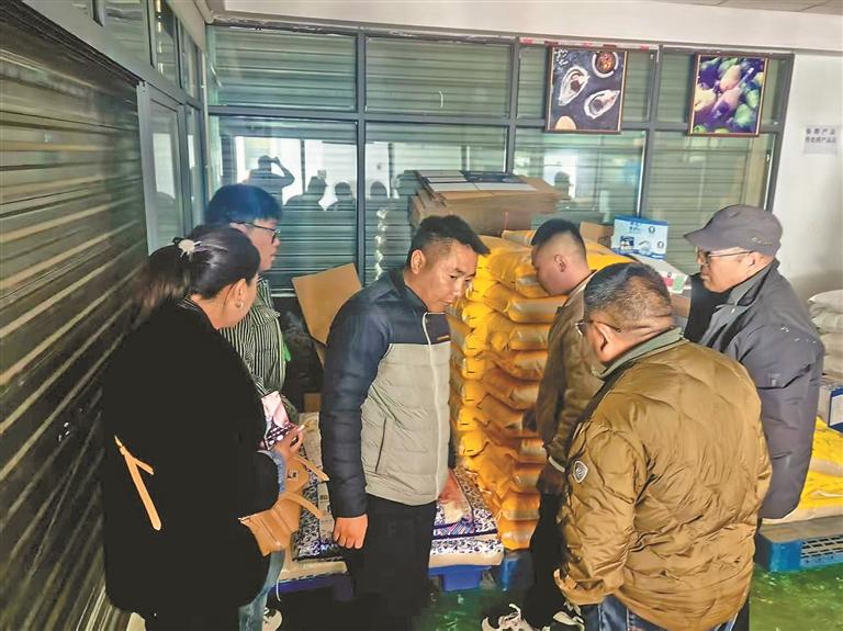 图为林周县教育局等相关单位工作人员在拉萨某农贸市场开展调研。本报记者 央金 摄