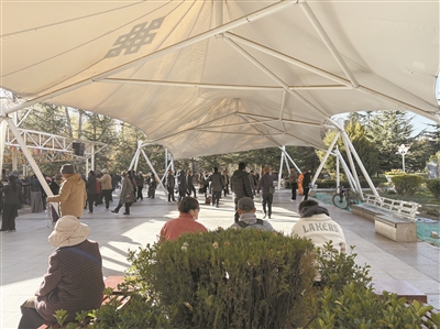 图为市民在宗角禄康公园里散步健身、跳锅庄。拉萨融媒记者 莫瑞英摄