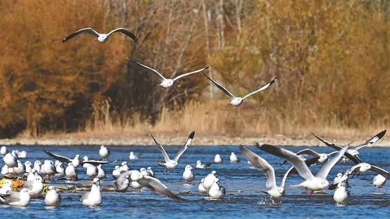 拉萨河畔的候鸟。本报记者 唐斌 摄