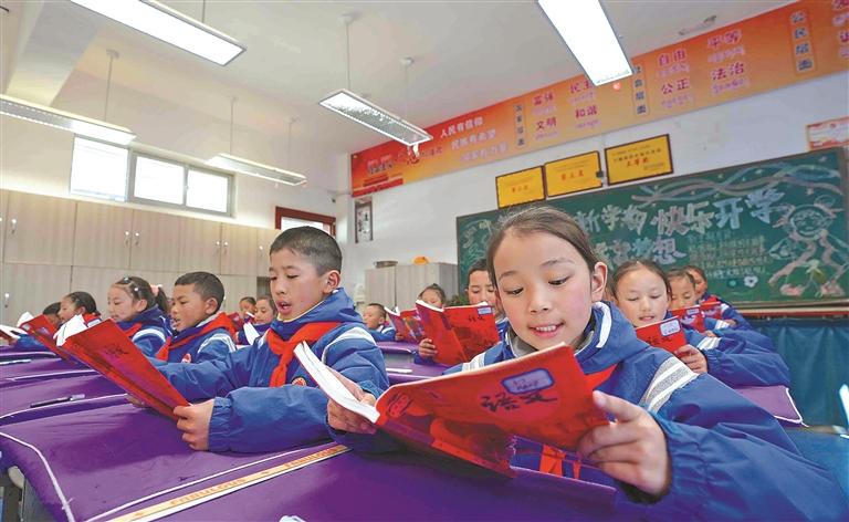 图为墨竹工卡县南京实验小学的学生在认真朗诵课文。本报记者 格桑伦珠 摄