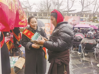图为活动现场,工作人员向市民宣传金融知识。拉萨融媒记者 杨 璐摄