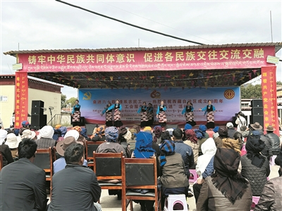 林周县干部群众也载歌载舞欢庆这场盛事。近日,拉萨远哒艺术团来到林周县江热夏乡加荣村,为大家献上了精彩纷呈的节目。整场演出以歌舞的形式展现幸福新西藏的美好图景,反映了西藏自治区60年来的光辉历程,表达了西藏各族人民永远听党话、感党恩、跟党走的真挚情感。