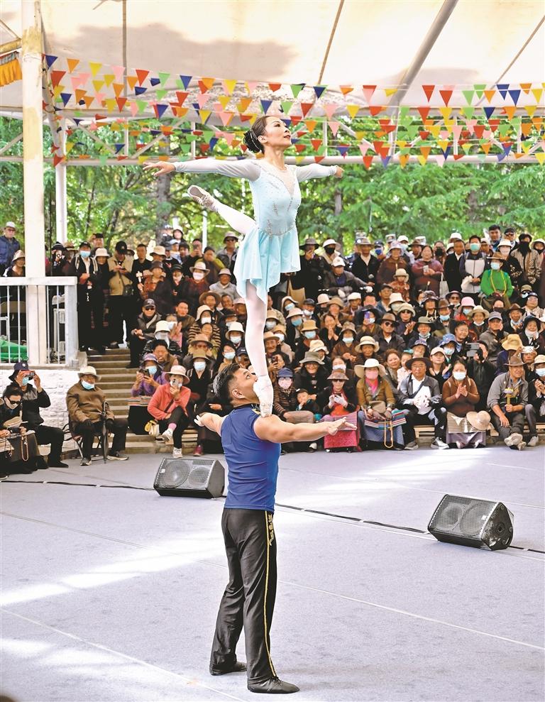 图为演员们在表演杂技《肩上芭蕾》。本报记者 唐斌 摄