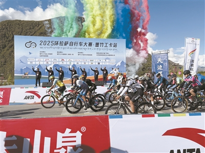 作为2025环拉萨自行车大赛系列赛的首站,墨竹工卡站赛事更加注重骑行体验,参赛选手们迎着绿水蓝天,在高山草甸间骑行,道路两旁的青稞麦浪随风轻舞,赛道沿途的村民挥舞着国旗为选手们加油鼓劲,如画的风景、热情的群众都让人心旷神怡。