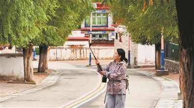图为市民游客在塔巴村拍照定格美好瞬间。 拉萨融媒记者 莫瑞英 摄