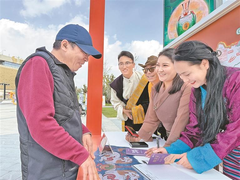 “万人墨竹探亲游”活动的探亲证发放处人潮拥挤,排队申请领证的市民络绎不绝。“我们准备了1万本免费发放的探亲证,探亲证上详细介绍了红色文化游、蓝色康养游、绿色生态游、文化探秘游、墨竹深度游精品线路的详细内容供大家选择。届时,我们将准备好香甜的青稞酒、洁白的哈达、美味的藏餐等候咱们南京的兄弟姐妹回雪域高原的墨竹家中看看、坐坐。”墨竹工卡县文化旅游公司负责人扎西措姆在探亲证发放现场介绍道。