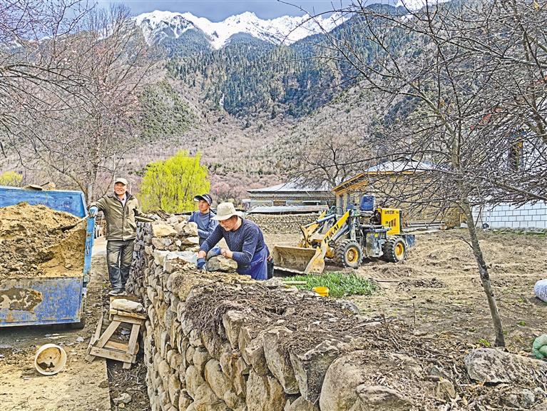 漫步村落,远远就听见喧闹聊天和砌墙的声音,原来是强巴一家正在给果园砌围墙。“院里的苹果树发芽了,为了防止牛吃,我们就用石头将围墙垒得高一些,杜绝一切影响苹果收成的因素。”强巴爽朗地笑道,“去年我们家卖苹果共收入4万元,一年之计在于春,现在就要做足准备,今年收成肯定会更好!”闲谈间,强巴从家里拿出一篮自家产的苹果分给大家吃,深红的苹果在阳光下闪耀着诱人的光泽,散发着春天的甜美气息。