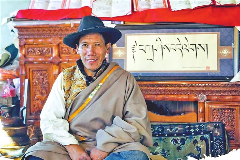 索朗多布杰与他的作品。本报通讯员 加布 摄