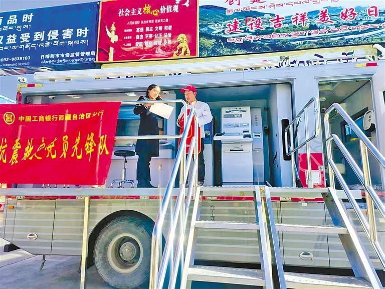 图为工行西藏分行在日喀则市定日县抗震救灾。