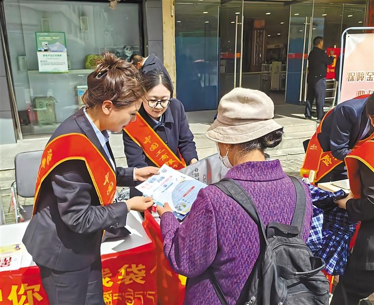 图为工行西藏分行工作人员为老年客户讲解反诈骗知识。