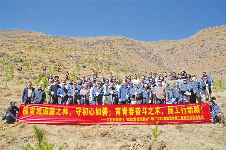 图为工行西藏分行开展“ICBC雪域清廉林”和“ICBC雪域青年林”建设活动。