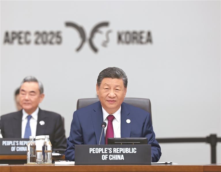 习近平强调,中国始终坚持对外开放的基本国策,以实际行动推动建设开放型世界经济。中共二十届四中全会通过了关于制定“十五五”规划的建议。中方将以此为契机,进一步全面深化改革,坚定不移扩大高水平对外开放,不断以中国式现代化新成就为亚太和世界提供新机遇。(讲话全文另发)