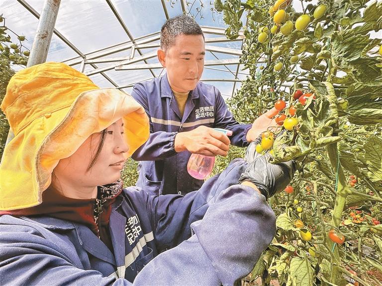 图为昌都市贡觉县现代农业产业园区内,技术员在大棚内教授当地群众小番茄种植技术。本报记者 白玛泽旺 次仁平措 摄