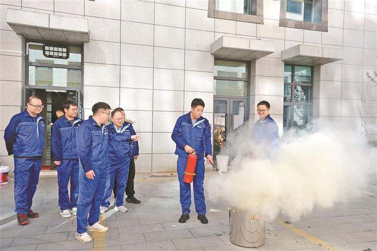 图为该指挥部工作人员在进行消防器材实操演练。本报记者 刘斯宇 本报通讯员 张鹏 摄
