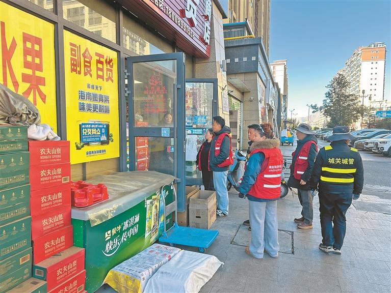 图为林琼社区联合城管执法部门开展店外店专项整治行动。本报记者 格桑伦珠 摄