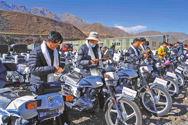 近日,那曲市索县举行村医健康巡诊摩托车发放仪式,向全县124个行政村(居)的乡村医生配发巡诊摩托车124辆,实现全县村医巡诊交通工具基本覆盖。