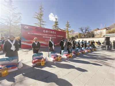 拉萨融媒讯 11月26日,城关区政协联合城关区娘热民间艺术团,开展了“党旗下的誓言”——娘热民间艺术团暨旦珍委员工作室“送温暖、献爱心”帮扶捐助困难家庭活动,将关怀送到95户困难家庭和99位高龄老人手中,让他们在这个初冬感受到温暖。