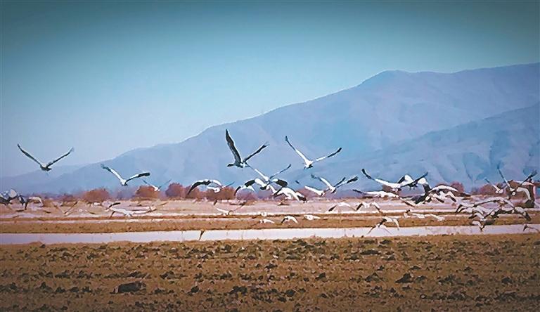 拉萨市林周县境内的黑颈鹤。本报记者 白玛泽旺 摄