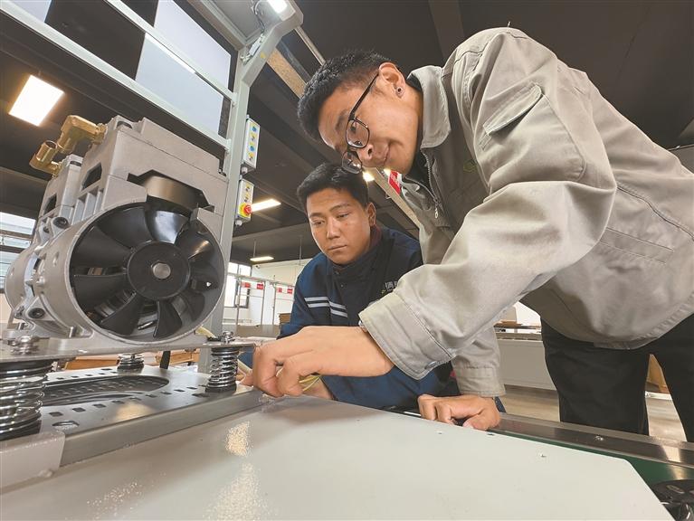 西藏清匠电器科技有限公司技术人员在车间组装制氧设备。本报记者 白玛泽旺 摄