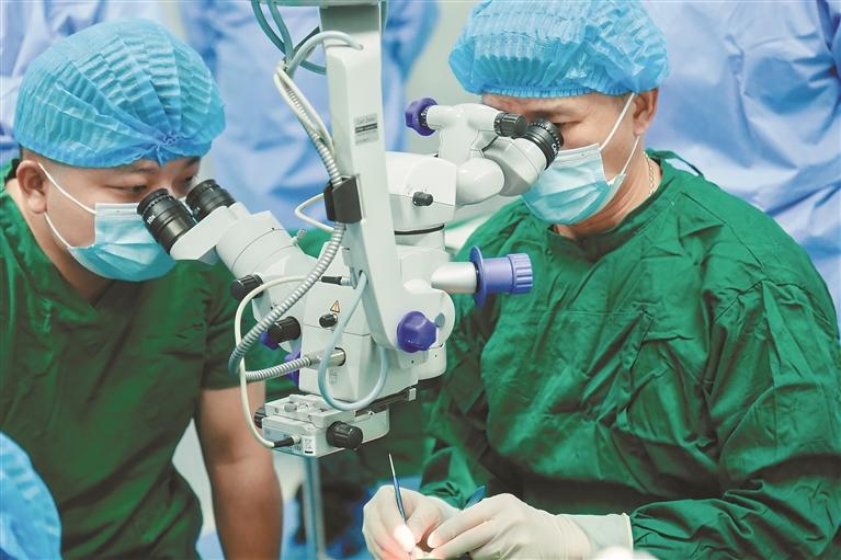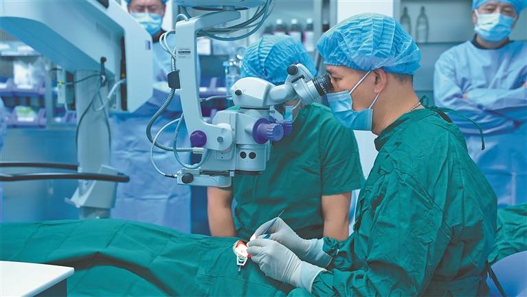 图为医护人员使用飞秒激光设备开展手术。本报记者 刘斯宇 摄