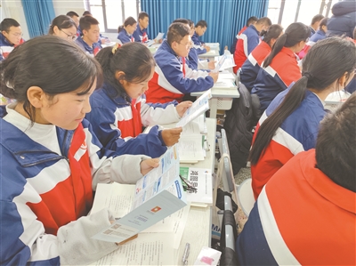 图为拉萨市第二高级中学高二(3)班学生在阅读学生资助政策宣传册。拉萨融媒记者 齐永昌摄