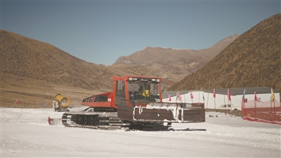 图为雪场工作人员操作铲雪车作业。拉萨融媒记者 董 辉摄