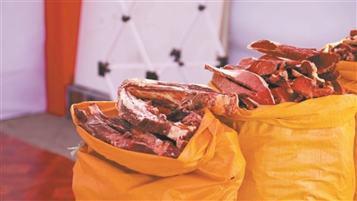 图为牦牛肉销售市场里的牛肉。拉萨融媒记者 丁增美朵摄