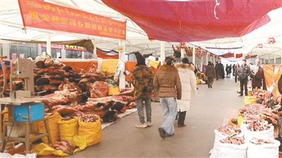 在嘎吉林广场,正在举办的农产品展销活动吸引了众多市民,现场热闹非凡。展销区,各类农产品陈列整齐,其中牦牛肉制品区域人气颇高。商户次旦说:“我在嘎吉林广场这边主要卖牛肉干,今天是展销活动举办的第五天,生意很不错。除了牛肉干,还有各种年货,欢迎大家来嘎吉林广场选购。”