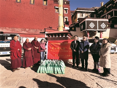 为推动党的创新理论和惠民政策走进宗教活动场所,近日,达孜区工商联联合西藏普德医药有限公司走进甘丹寺,开展“商心暖达孜”主题活动。