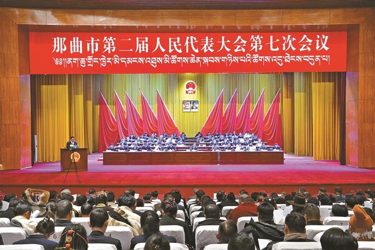 那曲市第二届人民代表大会第七次会议开幕会现场。