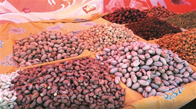 图为展销现场,摊主在展示年货。拉萨融媒记者 莫瑞英摄