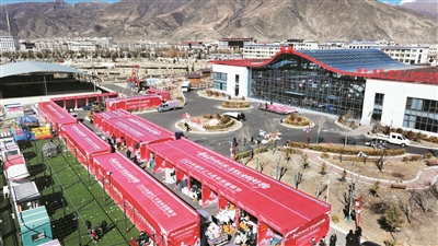 图为墨竹工卡县“幸福墨竹年味浓·惠享生活购好物”年货展销活动在嘎则新区生态园热闹开市。