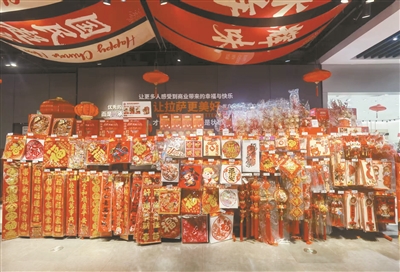 春节、藏历新年临近,年味变得“触手可及”。日前,记者实地走访发现,我市各大超市已变身“年货大街”:高悬的大红灯笼、醒目的“福”字墙与琳琅满目的节庆商品交相辉映。今年,各大超市着力打造沉浸式消费场景,通过主题陈列与文化展示,不仅满足采购需求,更让顾客在逛与选中,提前感受到浓郁祥和的节日氛围。