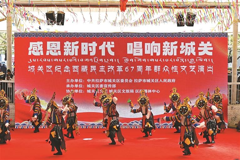 图为3月25日,“感恩新时代 唱响新城关”城关区纪念西藏民主改革67周年群众性文艺演出在宗角禄康公园举行。图为文艺演出现场。本报记者 丹增群培 摄